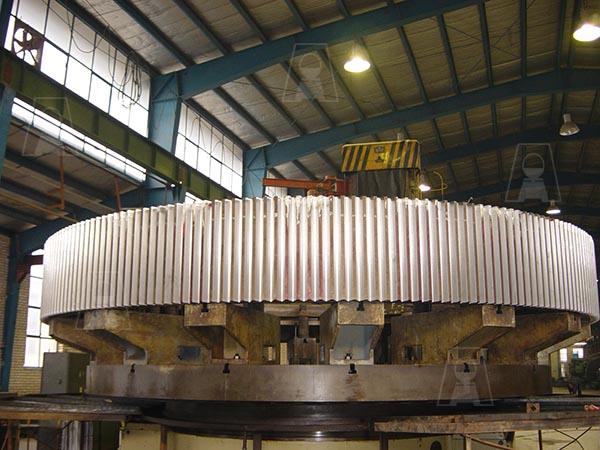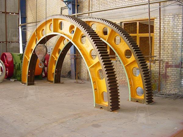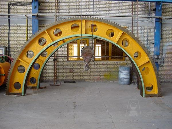شامل چرخ دنده های (CROWN WHEEL) عمدتاً از جنس فولادهای کربنی کروم-مولیبدن دار به سفارش شرکت های سیماناصفهان، سیمان سپاهان، سیمان عمران پارس تولید شده است. قطعات تولیدی این آسیاب ها در این واحد از جمله چرخ دنده CROWN WHEEL سیمان سپاهان به قطر تقریبی 8 متر، ارتفاع 1 متر وزن خام 76 تن و وزن تمام شده 38 تن از جنس فولاد کروم- مولیبدن دار بوده که برای اولین بار در کشور تولید شده است. چرخ دنده های CROWN WHEEL سیمان اصفهان به قطرهای مختلف تا 6متر نیز از دیگر تولیدات این شرکت می باشد.