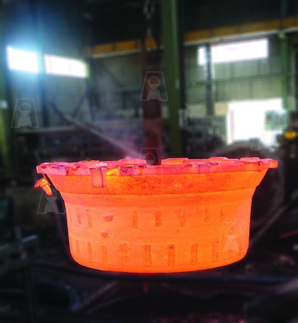 چرخ دنده های (CROWN WHEEL)، زره های مختلف (لاینرها)، دیافراگم های مختلف، چکش های سنگ شکن، مخروطی از جنس فولادهای کرومدار و ضدسایش از این نوع قطعات میباشد. چرخ دنده CROWN WHEEL فولاد مبارکه که دارای 5/7 متر قطر و وزن تمام شده 34000 تن بوده و جهت پودر کردن سنگ آهن و آماده سازی مواد اولیه در واحد گندله سازی استفاده می شود از تولیدات مجموعه فولاد اخگر می باشد.