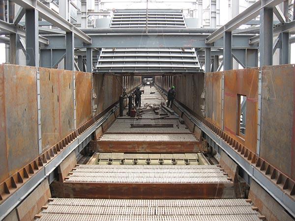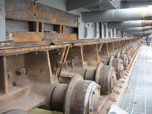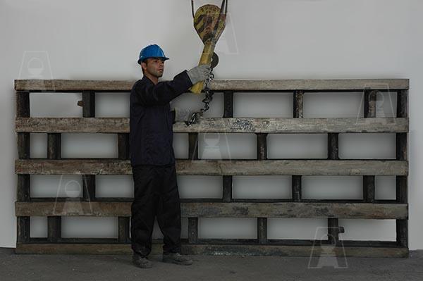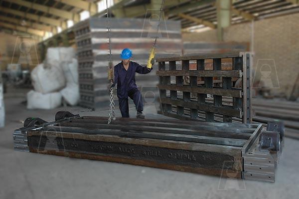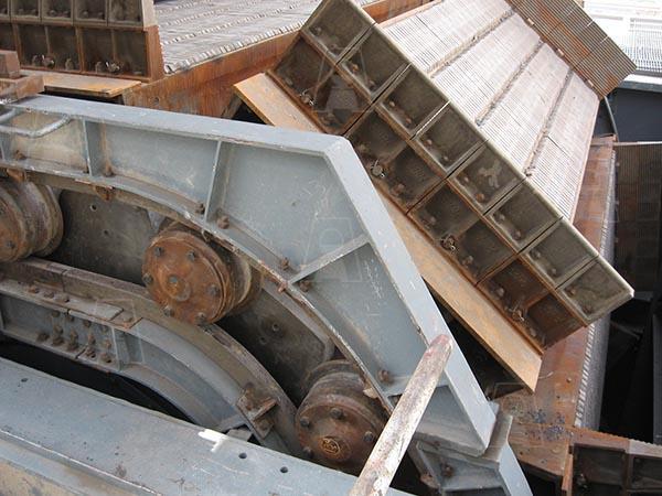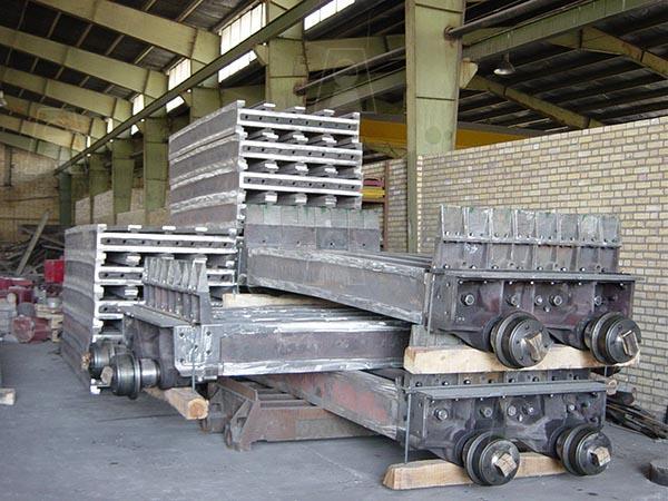 شامل قطعات سنتر پارت، اندکستینگ، گریتبار، سایدوالهای دیواره، چرخ و محور، پلیتهای جانبی، پیچ و مهرههای مخصوص از جنس فولاد کم آلیاژ و مقاوم در برابر خزش با وزن حدود 10 تن که برای اولین بار در کشور و به صورت انحصاری به سفارش شرکتهای فولاد خوزستان، فولاد مبارکه و شرکت گندله سازی گلگهر سیرجان توسط شرکت فولاد اخگر ساخته شده است، 220 عدد از این مجموعه قطعات در محدودهای به طول 100 متر به صورت پیوسته در خط قرار میگیرند. این پالتها در مرحله اول گندله را بارگیری و سپس به قسمت پخت کوره مداوم در درجه حرارت حدود C 900⁰ تا C 1100⁰ حمل مینماید که در انتها بر روی صفحات خنک کن ریخته شده و جهت احیای آهن اسفنجی آماده میگردد.